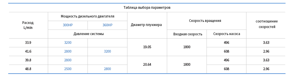 Таблица выбора параметров
